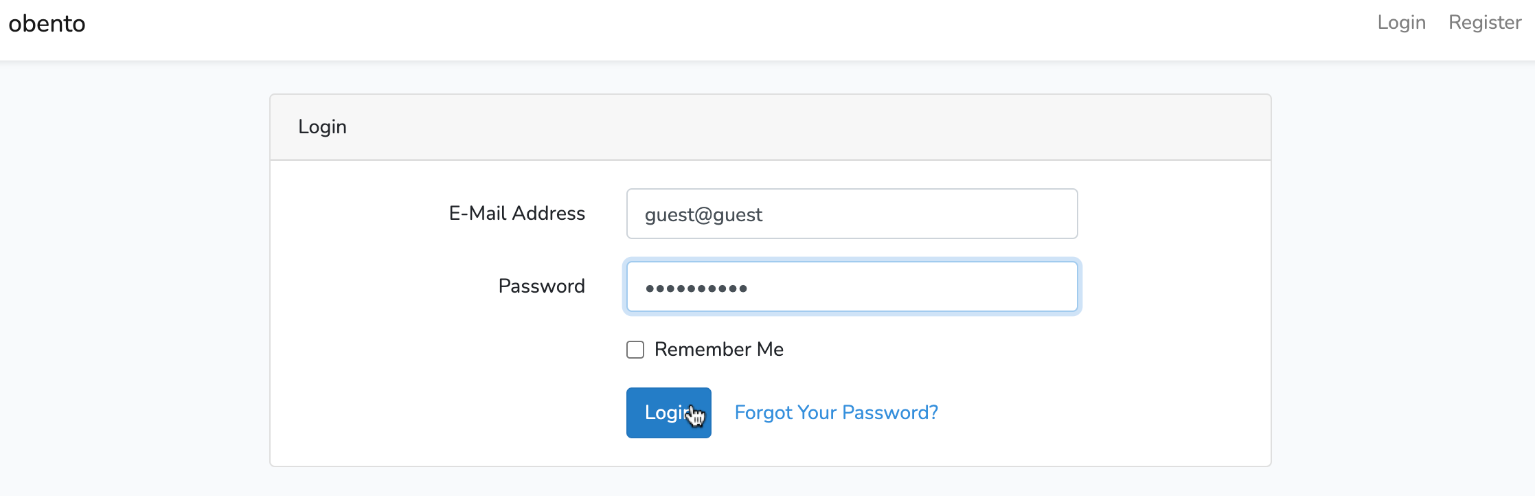 obentoページの右上のLOGINをクリックしてください。