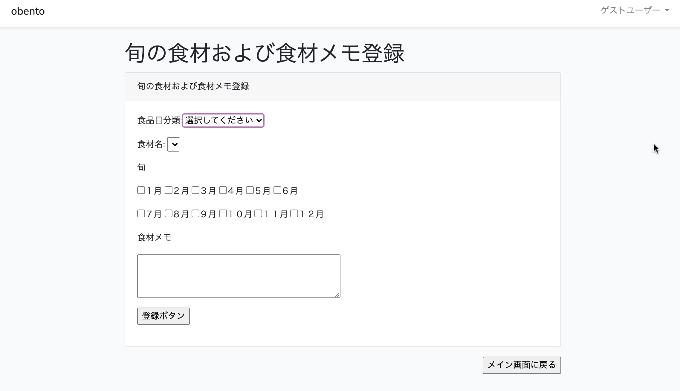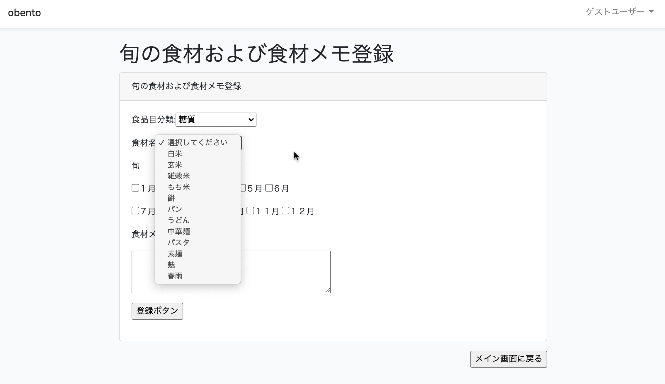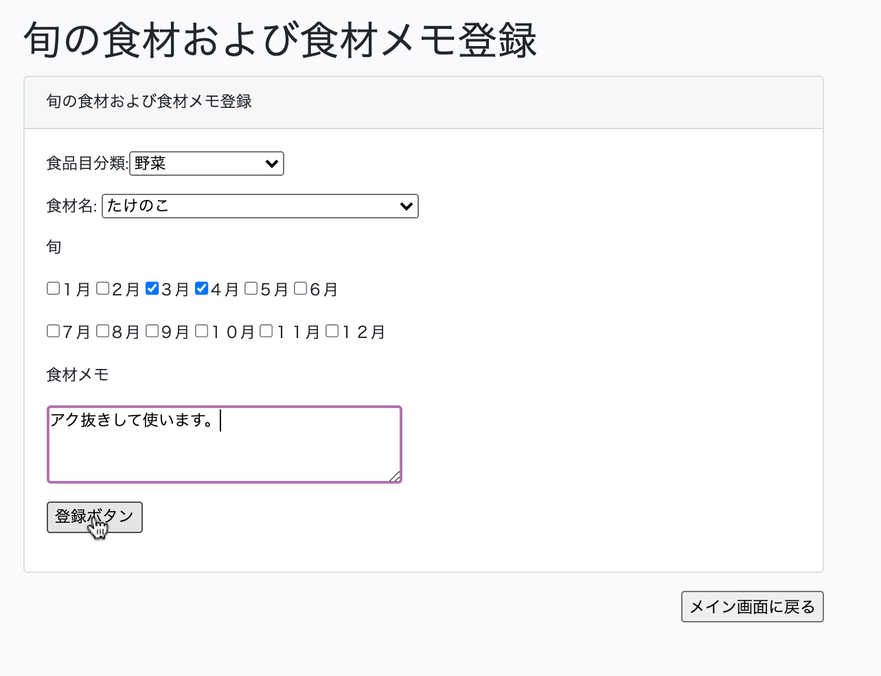 その食材の旬の月にチェックを入れ、食材に関するメモを書くことも可能です。