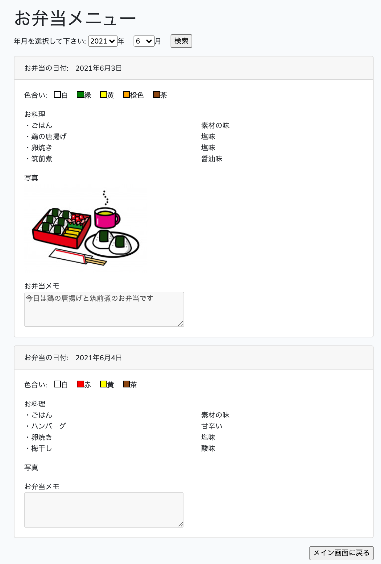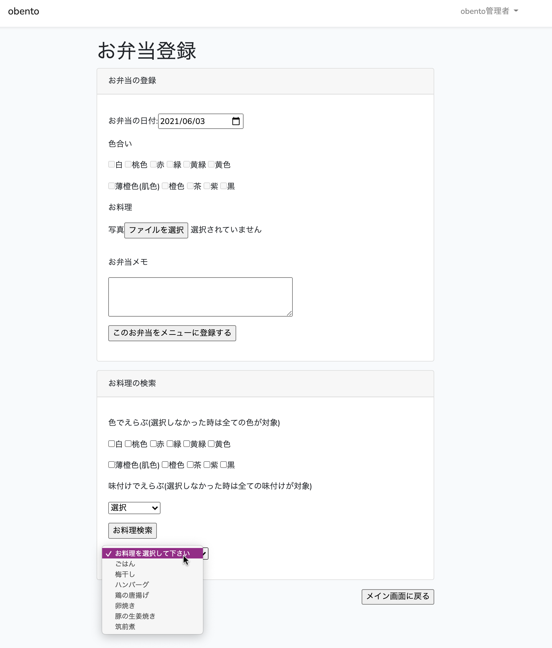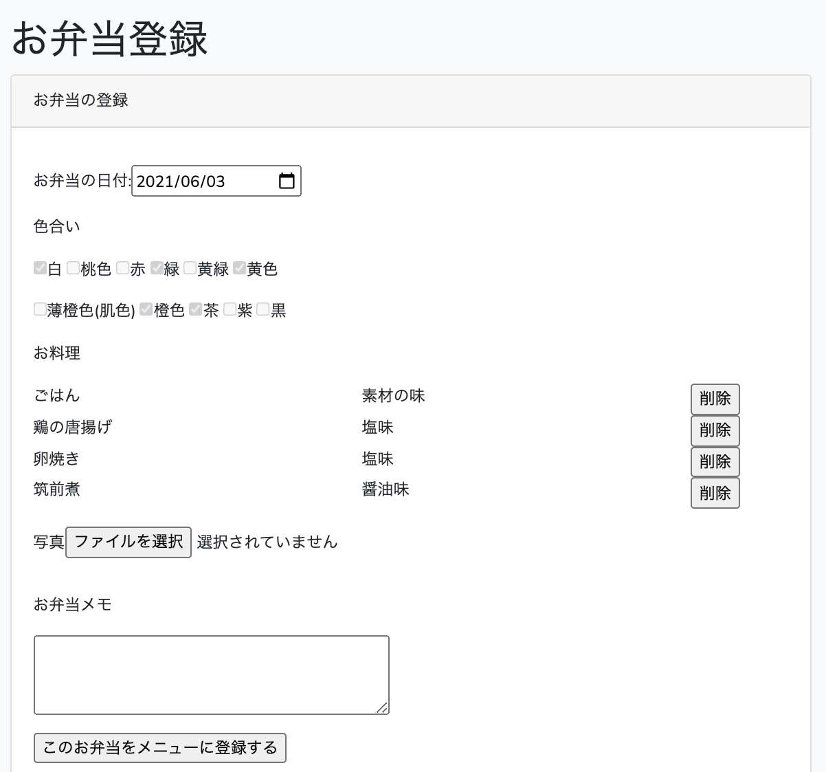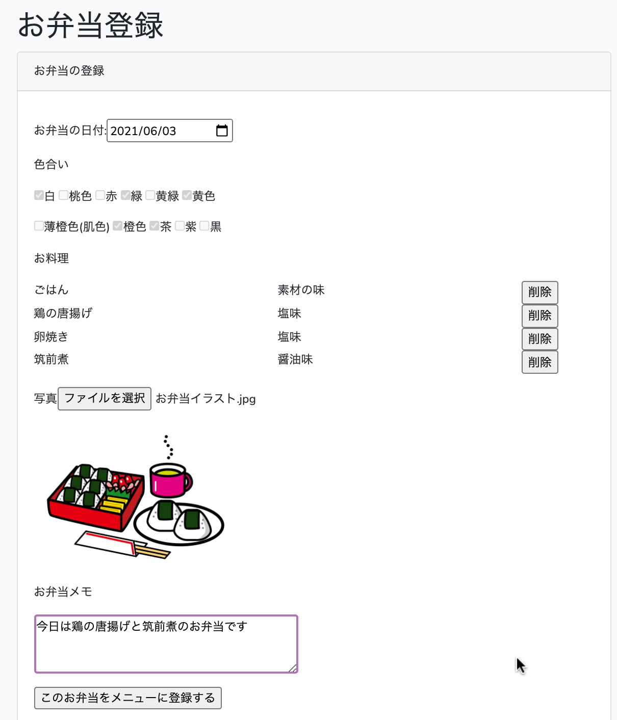 画像やお弁当メモを登録することができます。